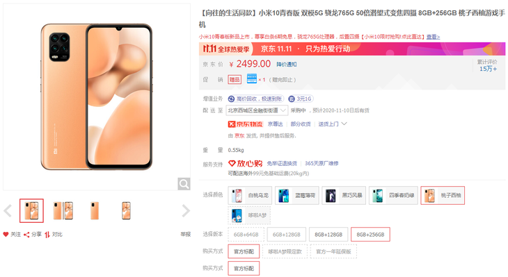小米10青春版8+256GB版本于眼下双十一期间直降100,到手价仅2499元,心仪已久的用户们可以趁机入手。