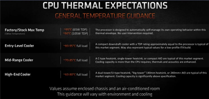 不过,AMD官方表示,采用zen3架构的处理器相较其他处理器都更耐热,TDP 105W的处理器在使用官方散热器的时候温度可以承受的90°C,65W TDP的处理器则可以达到95°C。相较以往处理器70-80°C确实高出不少,不少人也对此表示了担心。