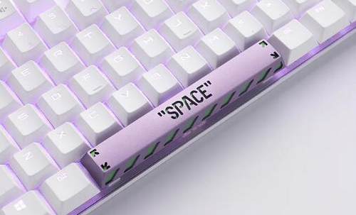 配色方面,提供黑橙、白橙、紫绿三种颜色,提供6.25U、2.25U、1U三种规格,满足用户的个性化需求。根据HolyOOPS介绍,空格键外观受到了知名潮牌OFF-WHITE的影响, 正面大字体大符号结合四角箭头和侧面斑马线配以撞色设计,搭配的恰到好处。