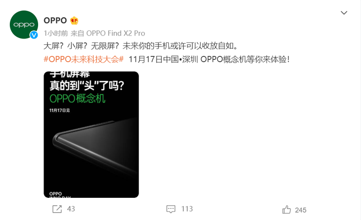 OPPO明天将发布概念手机,屏幕形态或有巨变