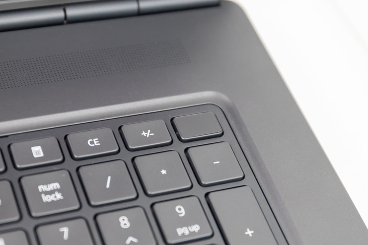 戴尔Precision 7750工作站C面为类肤材质,触感舒适。手托部分空间充足,可以起到比较好的承托作用。键盘的按键行程为1.6mm,按键反馈清晰,打字体验还不错,长时间打字输入也会比较轻松。右侧保留了数字键盘区域,对于经常需要输入数字的用户很友好。