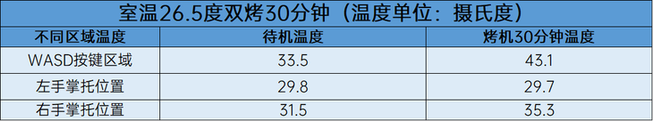 经过30分钟的烤机测试后,机身温度保持得很好,特别是掌托位置,其中左手托温度还稍有降低,说明烤机对左手托部分的温度应该是没有影响的,微小的变化只是环境或者测量误差。值得一提的是,工作站在烤机的时候,风扇仍旧保持在比较安静的状态,不会有特别明显噪音。