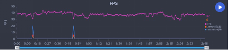 《王者荣耀》中,将特效全部打开并开启高帧率模式,帧数稳定在38帧左右,虽能流畅运行,但有时略显卡顿。
