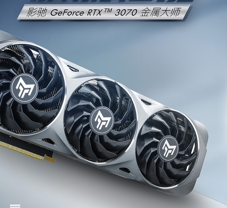 此次为大家推荐的RTX3070非公版显卡为影驰RTX3070金属大师,它目前售价4599元。这款显卡使用了压铸铝合金一体成型上盖,并且融入了流线型的设计元素,再加上银灰色的配色,外观显得极具科技感,非常炫酷,同时也大幅提升了散热面积。显卡背面是一块全金属加固背板,辅助散热的同时防止PCB变形,背板上采用几何镂空造型设计,兼具美观和散热需求。侧边配备了一个HDMI2.1和3个DP1.4a视频接口,高支持8K 60Hz稳定高清输出。