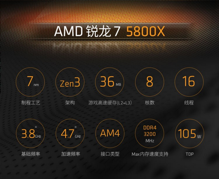 锐龙7 5800X为8核心、16线程设计,基础频率3.8GHz,最大加速频率高达4.7GHz,对于大多数人来说,无论办公还是游戏娱乐已完全够用。需要注意的是,包括锐龙7 5800X在内,这代锐龙9和锐龙7的盒装处理器均没有标配散热器,需要用户们自行购置。AMD官方推荐选用水冷散热器,以便充分释放新一代锐龙的卓越性能。
