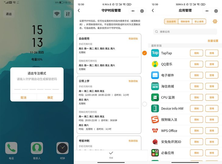 通过亲情守护功能,你可以很容易掌控孩子使用手机时间。通过远程开启专注模式后,手机只能实现基本的打电话、看时间等功能,无法玩游戏或者使用其它APP,这样孩子就不会沉迷手机。你还可以设置手机可用时段,比如在上课期间无法使用手机等,或者单独禁止游戏等APP,灵活度比较高,可以实现高效的管理。