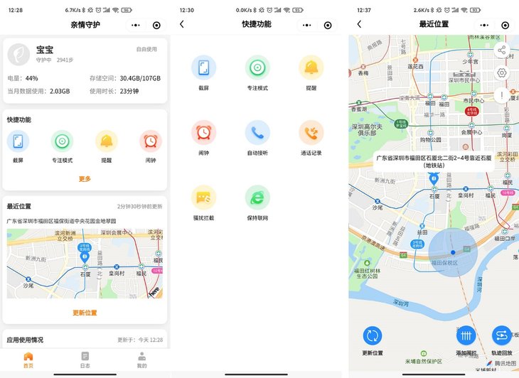 通过亲情守护功能不仅能有效掌控孩子玩手机的时间,家长设置起来也方便省心。这款手机还具备安全围栏功能,可以实时查看孩子当前位置信息,也可以设置安全区域,孩子离开该区域便会自动提醒。即使你不在家,也能远程守护家人。