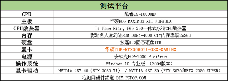 为了充分展现华硕这款TUF-RTX3060TI-O8G-GAMING显卡的性能,笔者组建了一套性能出色的测试平台。