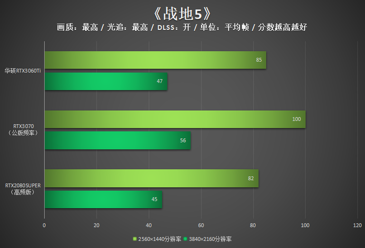 此次测试,为了对比华硕TUF-RTX3060TI-O8G-GAMING显卡的成绩,笔者还加入了一款RTX3070非公版显卡以及一款RTX2080SUPER非公版显卡的成绩。其中,RTX3070非公版显卡的频率与创始人版保持一致,而RTX2080SUPER非公版显卡则是一款高频版显卡,其Boost频率为1830MHz。