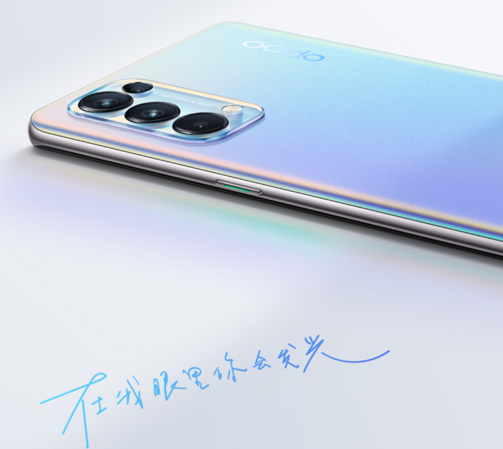 除了视频拍摄,OPPO Reno5系列的真机图以及部分信息已经公布。OPPO Reno5系列将会搭载6400 万水光人像四摄,前置为3200万像素镜头,支持65W超级闪充。