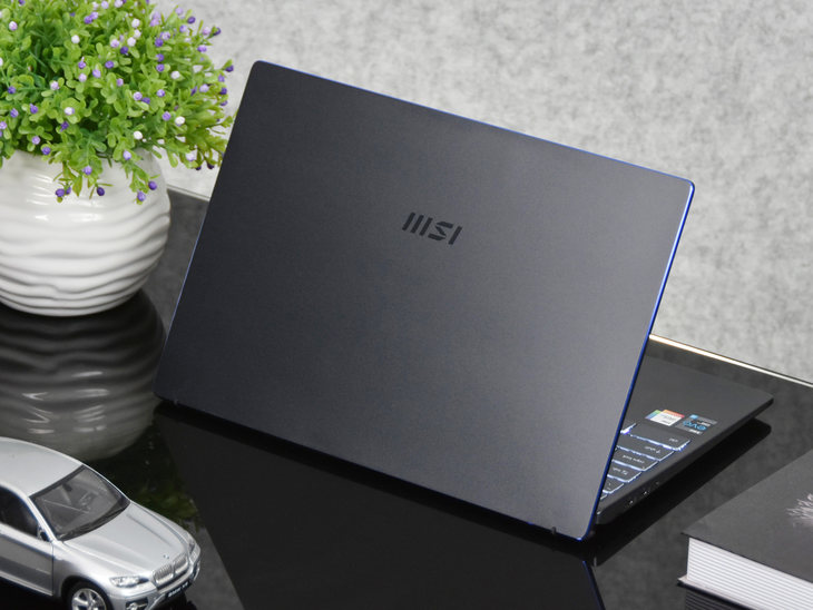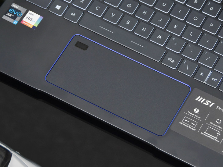 微星尊爵Prestige 14 Evo的机身采用了大量的铝合金材质,坚固又轻薄。深空灰外观搭配蓝色的CNC切边,让这款笔记本看上去很上档次。