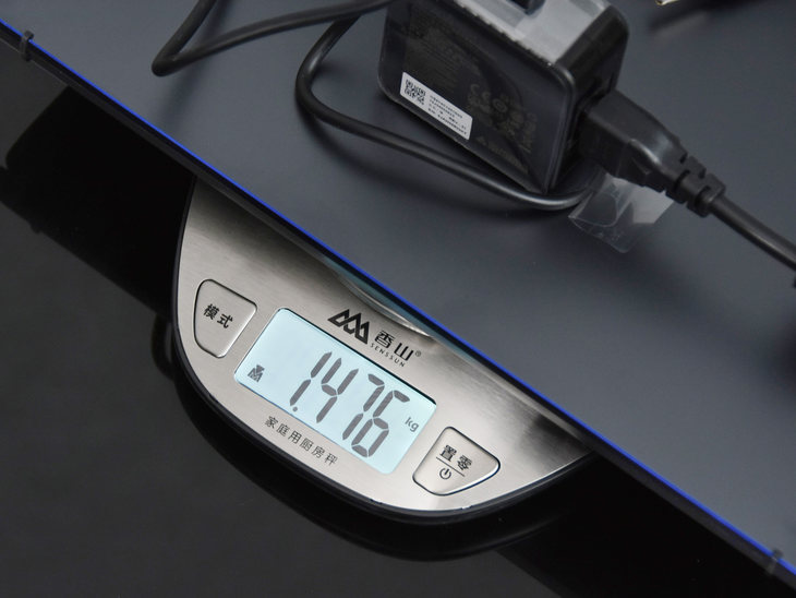 通过实测,微星尊爵Prestige 14 Evo的整机重量为1.193kg,搭配上电源适配器才1.476kg。显而易见,这款笔记本在轻量化方面做得是很不错的。