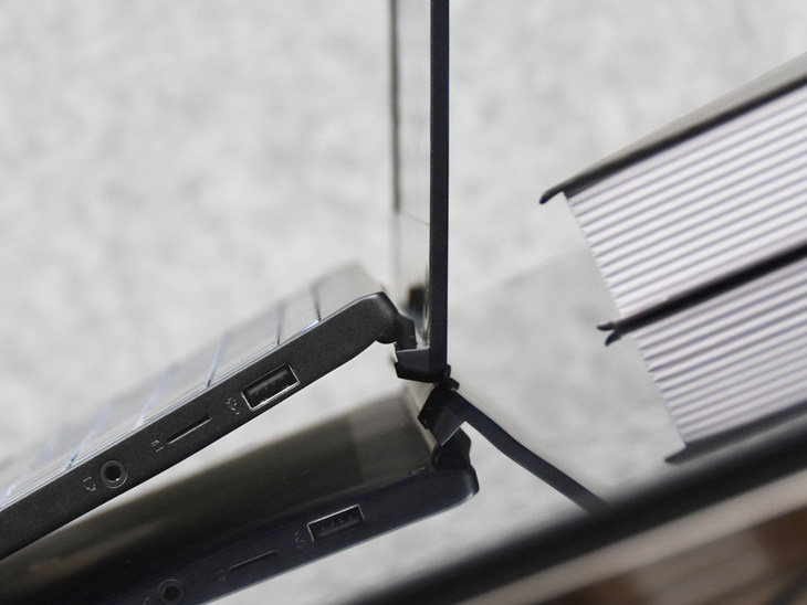 它的屏幕还采用了小翘根设计,当屏幕展开时,屏幕的小翘根会把机身翘起约5度左右,既有助于散热,有能够实现更好的键盘操作手感。