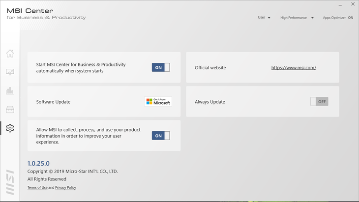 在第五个界面下,可对MSI Center软件进行一些基础设置。