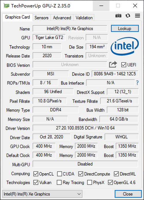 这款笔记本锐炬Xe核芯显卡的GPU频率为400MHz,Boost频率为1350MHz。
