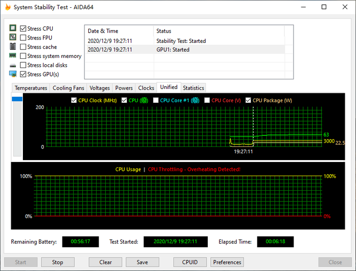 笔者利用AIDA64自带的压力测试,将对这款笔记本进行烤机测试。