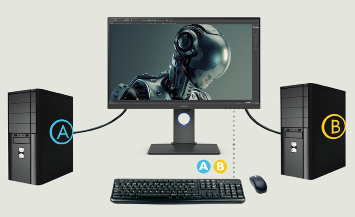 明基PD2700U支持PIP/PBP功能,不仅能够同时显示多任务,还能同时显示两台电脑上的内容,多平台快速切换,一套键鼠搞定两台电脑,让工作更高效。