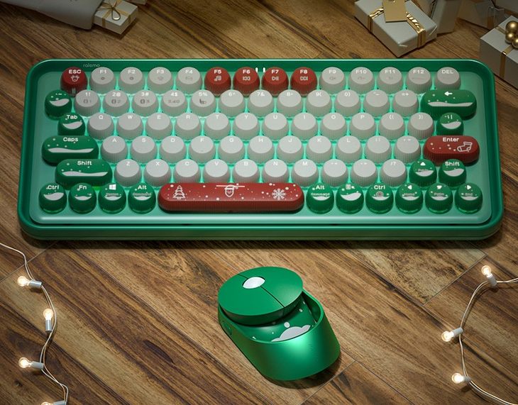 两款圣诞版键鼠产品都采用了绿色为主色调,ralemo Pre 5圣诞定制版键盘键帽也进行了特别定制,增加了许多圣诞元素,比如圣诞树、雪花等,增添圣诞气氛。ralemo Air 1圣诞定制版鼠标外观也有加入圣诞节元素。