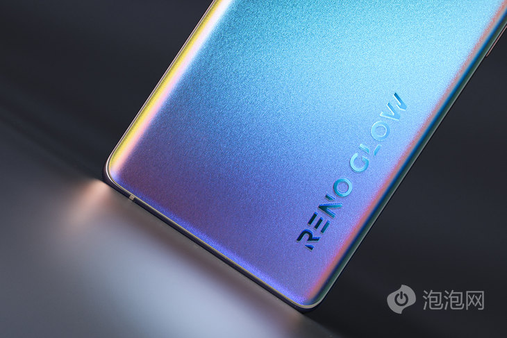 Reno5 Pro+拥有星河入梦、浮光夜影两种配色,均为玻璃材质,这两种配色都采用了较新的Reno Glow星钻工艺。Reno Glow星钻工艺和普通的AG工艺不同,把普通AG工艺的球状小颗粒变成了多面锥体。多面锥体反光面积更大,提升手机后盖的闪亮度,颜色更通透。