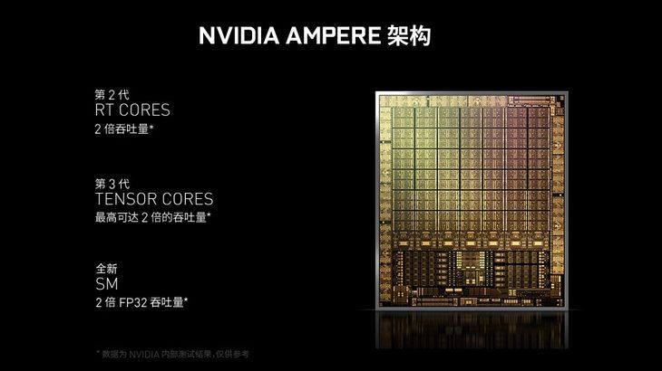 根据NVIDIA官方的阐述,NVIDIA Ampere架构拥有全新的RT Core(光线追踪核心)、Tensor Core(张量核心)和SM(流式多处理器)。新的RT Core在处理光线追踪相关的计算时,是初代RT Core的1.7倍效率, Tensor Core则有2.7倍的AI性能提升,能耗比相比较于图灵架构提升接近1.9倍,可以说此代架构进步非常明显。