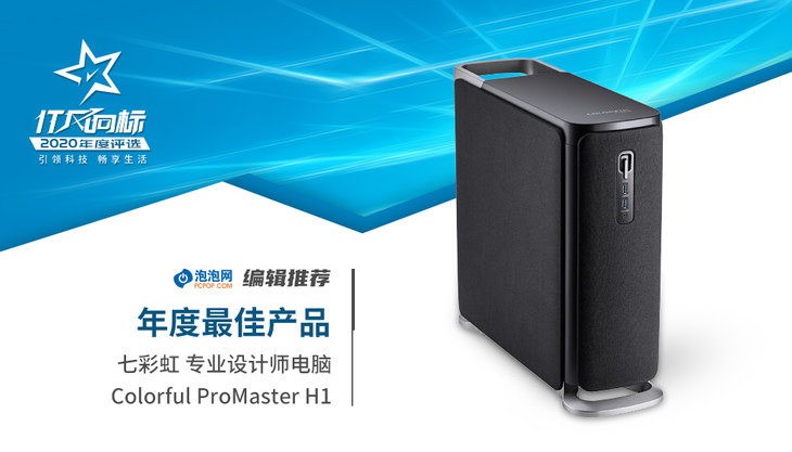 获奖理由:作为首批国内通过NVIDIA RTX Studio认证的设计师电脑,Colorful ProMaster H1以非常高的完成度,达成了包括硬件和软件诸多方面的认证要求。从设计师的角度我们也可以理解为,Colorful ProMaster H1设计师电脑代表了NVIDIA RTX Studio认证想要为设计师用户带来的优秀产品呈现。在外观上,考虑到创意永远是设计师群体的第 一起点,七彩虹大胆创新,Colorful ProMaster H1采用了全新的三面环绕布艺外观设计,并且通过竖置风道设置,巧妙地规避掉了积灰问题。由于布艺机身材质的特殊性,提供了优质的噪音控制和抑制机身共振。保证了设计师不受噪音打扰,沉浸在优质的创作环境之中。在性能方面,Colorful ProMaster H1集强大的计算能力、世界上更为强劲的 NVIDIA GeForce RTX GPU于一体。经全面精密设计,造就举世瞩目的功能强大的设计师电脑。专为创意工作流程优化设计和测试,支持分辨率高达8K的视频、实时光线追踪和AI辅助功能。现在,你的创意工作再无阻碍,作品快速呈现。