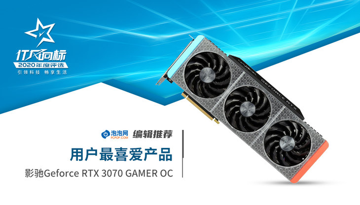 获奖理由:看到影驰Geforce RTX 3070 GAMER OC显卡的第 一眼,相信很多玩家们都会被它源自积木元素设计的外观所吸引。影驰在显卡外观上第 一次大胆融入了积木元素,打破显卡与积木的次元壁,DIY出一片独一 无二的GAMER,能随时随地随心百变出新花样,让玩家看到“显卡原来还能这么玩”,正所谓“无GAMER,不游戏”!而在硬实力上,影驰RTX3070 GAMER OC显卡也毫不妥协,高达1800MHz的默认Boost频率,超过RTX3070创始人版75MHz,游戏性能更加出色。更有三风扇加持的星乐散热器护航,能够让这款高频版RTX3070显卡的强大得以充分释放。可以说,影驰RTX3070 GAMER OC显卡一方面希望依靠独特的颜值设计,在琳琅满目的RTX3070非公版显卡当中脱颖而出,一方面又希望通过自身过硬的显卡研发实力,来打动新老玩家们的心。