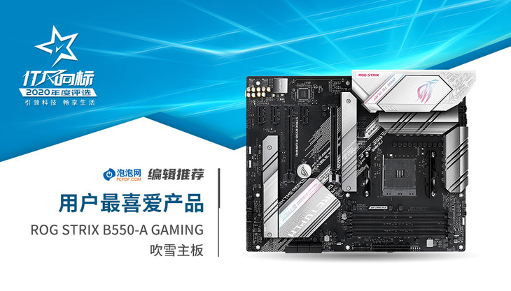 获奖理由:ROG STRIX B550-A GAMING吹雪是一款颇受欢迎的高颜值B550主板,它凭借银白色的一体化I/O装甲设计和ROG信仰LOGO就征服了不少玩家。在冷艳的外表下,它的实力也毫不逊色,首先是采用了高规格的供电设计--ProCoolⅡ是新接针供电,12+2相扎实的DrMOS配合高品质固态电容和超合金电感,以及数字供电控制,帮助玩家充分挖掘AMD锐龙处理器的强大潜能。同时,它配备的S1220A音频芯片输出信噪比更是高达了113dB,可以带来更为沉浸的音效体验。此外,这款主板还板载了雷电3接针,支持华硕ThunderboltEX3-TR扩展卡,可同时传输与显示8K视频或连接至多6个雷电设备。