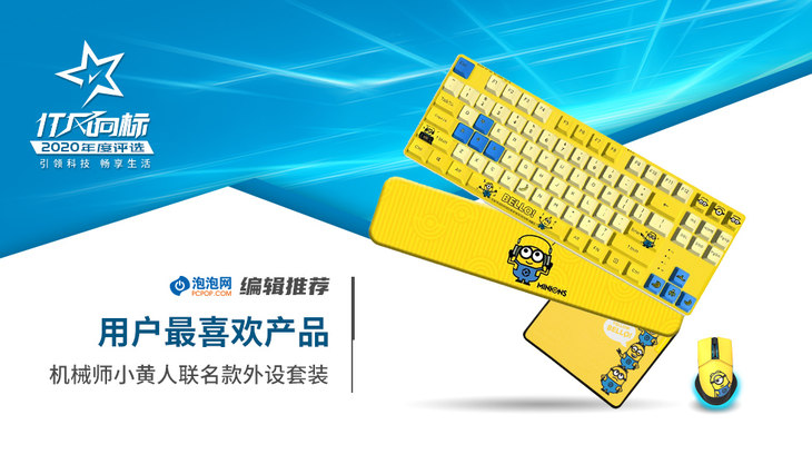 获奖理由:机械师&小黄人联名款外设套装是环球影业小黄人IP在电竞界的先进优选正版授权产品。