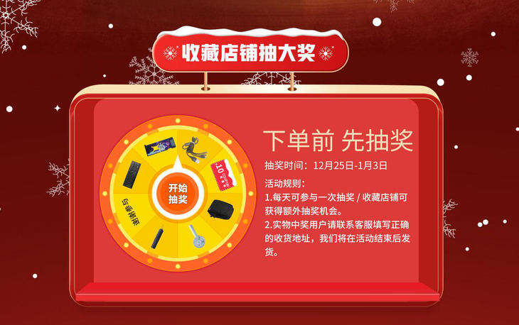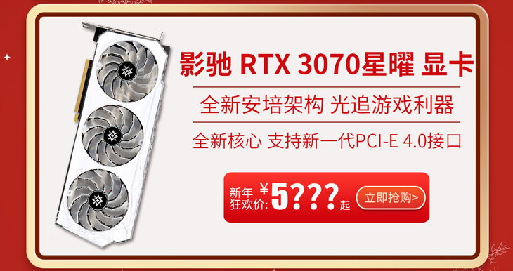 12月25日-1月3日,用户每日均可获得一次抽奖机会,影驰 RTX 3070 星曜定制外壳、影驰名人堂机械键盘、店铺10元优惠券等惊喜礼物陪你跨过2020年,喜迎2021年。
