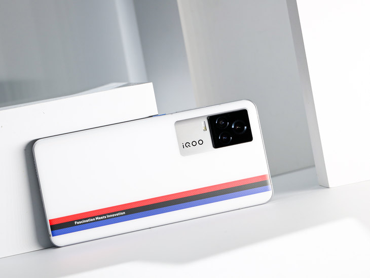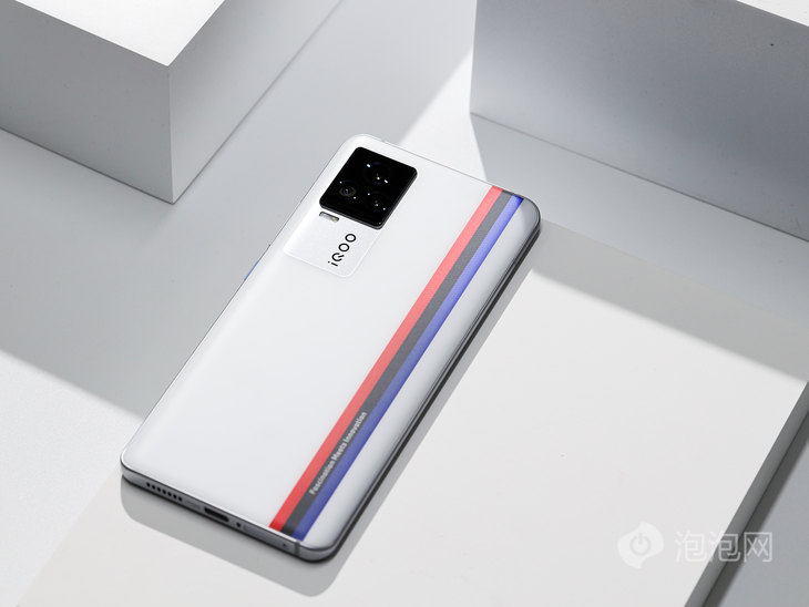 当我们细看红、黑、蓝三条色带时会发现,iQOO 7 传奇版的背部三条色带更加立体,同时三色纹理增加了动态跑光的视觉效果。