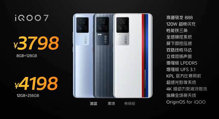 iQOO 7发布:骁龙888+120W闪充,3798元起