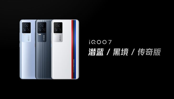 外观方面,iQOO 7拥有黑境、潜蓝、传奇版三种配色,采用全新的AG磨砂工艺。