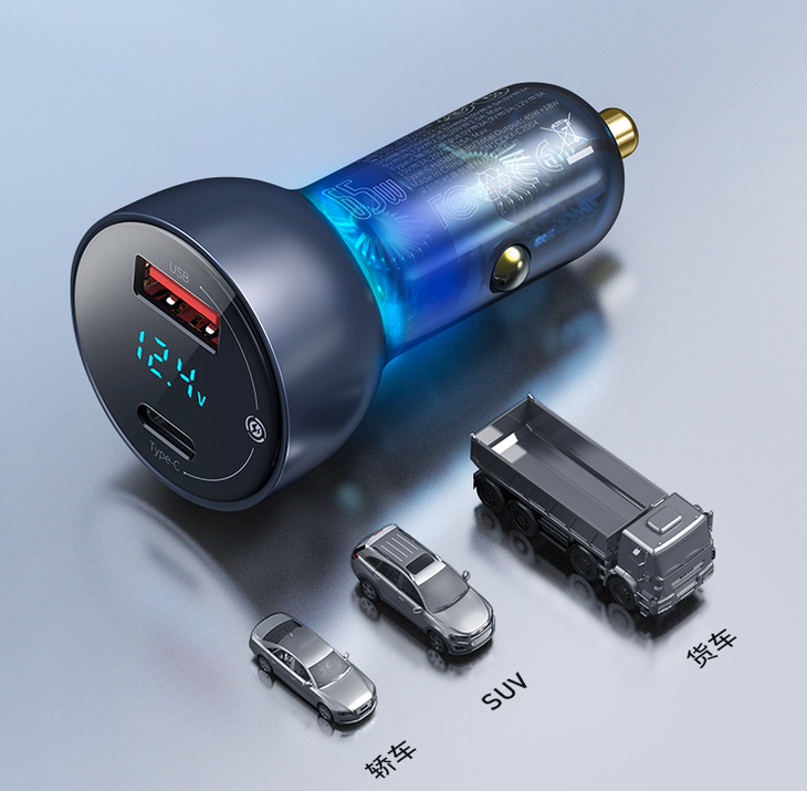 这一款车载充电器最高支持USB-C 45W加USB-A 18W合计63W的同时输出,对于大部分的用户来说是一个不错的选择。