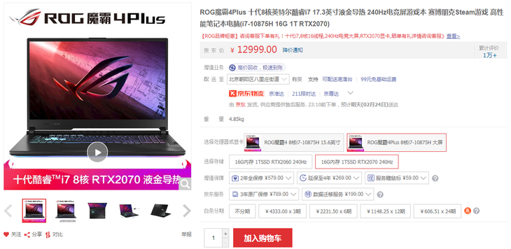 ROG魔霸4采用十代酷睿i7-10875H,搭载RTX2060显卡以及15.6英寸240Hz窄边框高色域电竞屏,之前13999元,当前活动价12999元。想入手大屏游戏本的玩家们可以瞧瞧ROG魔霸4Plus,其拥有17.3英寸240Hz专业电竞屏,RTX2060显卡机型当前仅需11999元。而搭载RTX2070显卡,采用十代酷睿i7-10875H的ROG魔霸4Plus当前直降2000元,到手价仅12999元。