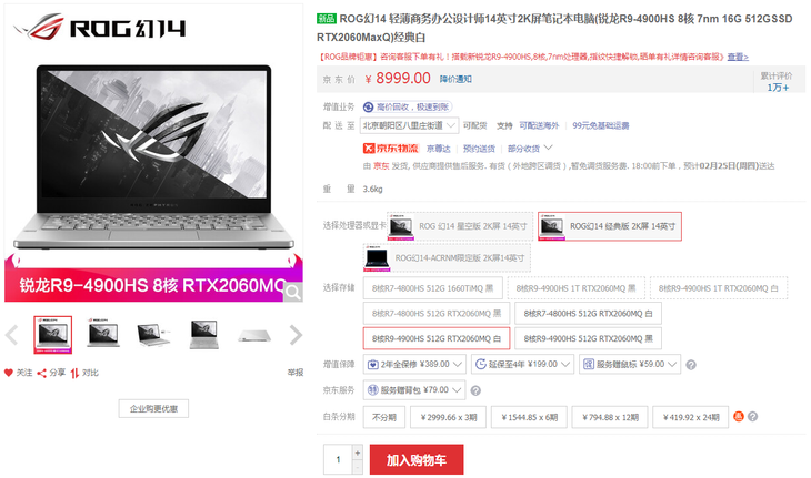 ROG冰锐2搭载AMD锐龙9 4900HS处理器,显卡则搭载RTX 2060 Max-Q,屏幕为15.6英寸,支持240Hz高刷新率,3ms响应、100%sRGB色域,性能达到了游戏本的水平。目前活动价9199元,直降800元。