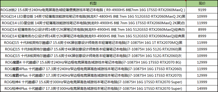 ROG十余款RTX20系列笔记本直降最高3000元