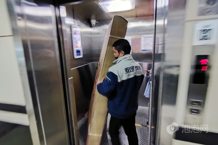 Redmi MAX 86”智能电视进入电梯时空间还是有一定富裕的