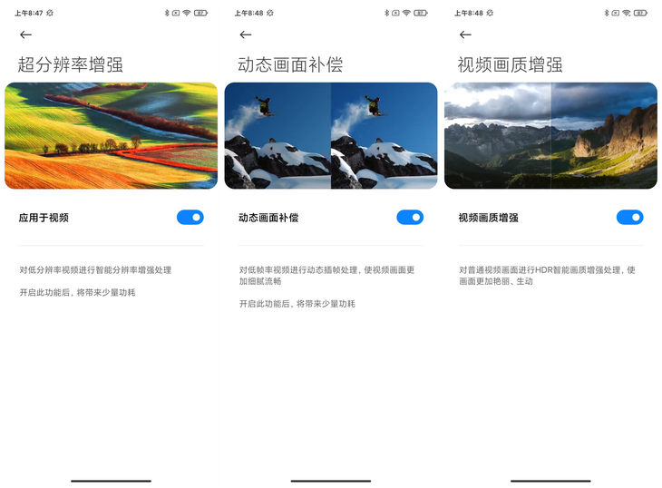 此外,Redmi K40系列也支持MEMC动态画面补偿技术,低帧率的视频内容最高可以插帧到60fps,提升视频的流畅度。