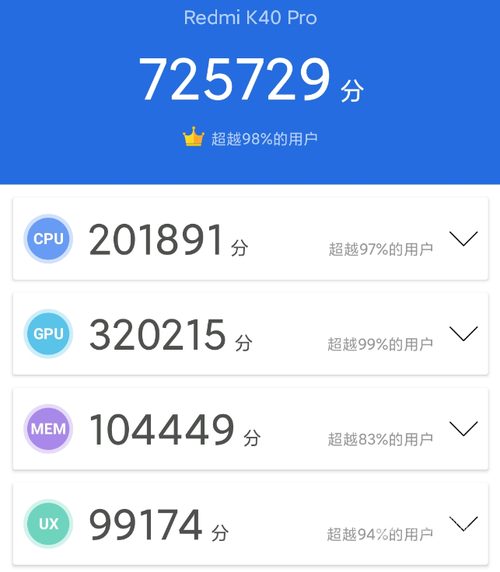 Redmi K40 Pro搭载了骁龙888移动平台,骁龙888搭载的Kryo 680 CPU采用了1+3+4的八核心设计,一个超级核心为Arm Cortex X1,主频达到了2.84GHz,另外三个大核为A78核心,主频为2.4GHz,四个小核心为A55,主频为1.8GHz,Kryo 680 CPU的整体性能相较于上一代提升了25%,功耗降低25%。在GPU方面,骁龙888移动平台搭载了Adreno 650 GPU,在图形渲染速度方面与上一代相比提升35%,功耗降低20%。