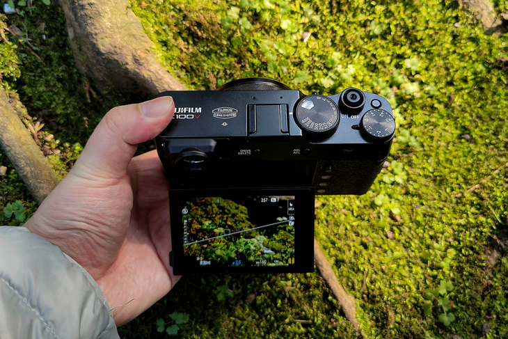 在使用上,富士X100V也给我十分人性化的体验,就比如翻转屏的设计,在我把相机近距离靠近拍摄地上苔藓时完全不需要蹲下趴在地上来调整画面的角度,毕竟还是大冬天呢,通过翻转屏触屏就能完成取景、对焦、快门这一系列操作。