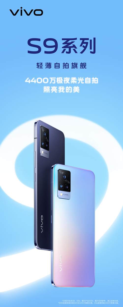 今天,vivo官微发布了一张vivo S9的海报,这款备受瞩目的新品终于逐渐揭开了神秘面纱。根据海报内容和该机的背面照可以推测,即将发布的vivo S9应该拥有超清极夜自拍、高颜值配色、轻薄机身三大亮点。