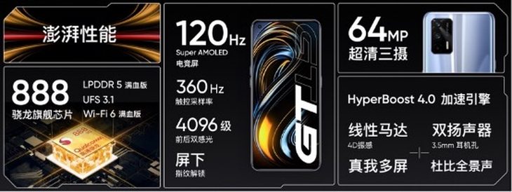 3月4日,realme真我智能手机品牌召开“全速战神,不负GT之名”真我GT旗舰新品发布会。作为全新系列的首秀,真我GT以越级之姿,重塑旗舰定义。独创的速度美学、极致的澎湃性能、可靠的持久耐力让真我GT在设计、性能、体验三方面做到了100%的强悍,兼具120%的惊喜,充分释放骁龙888高端芯片之潜能。立足潮玩设计与越级性能的品牌理念,真我GT将为用户创造旗舰智能手机的超凡体验。