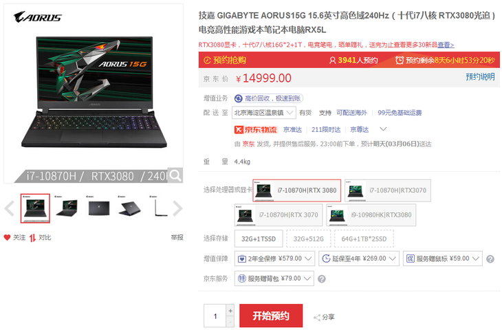 接下来,笔者就为大家推荐一款基于Comet Lake-H处理器打造的高端游戏本——技嘉AORUS 15G。处理器方面这款游戏本采用的是酷睿i7-10870H,显卡则可选配RTX3070笔记本电脑GPU以及RTX3080笔记本电脑GPU。这样一套硬核组合,其游戏性能已不必再多言。