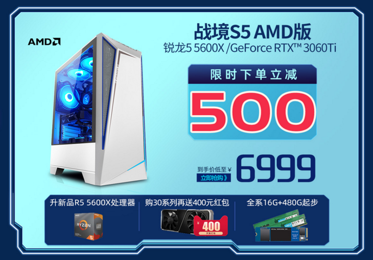 此次,特别为喜欢游戏的玩家们推荐四款攀升游戏主机力作,包括攀升战境S5十代i5 10400F/GTX1660S/16G、攀升战境S5 AMD 5600X/2060/3060Ti/3070、攀升i7 10700F/10700K/RTX3070、攀升十代i7 10700F/RTX2060/3060 12G,它们款款颜值炫酷,性能给力,再加上实实在在的价格直降,给你看得见的实惠。