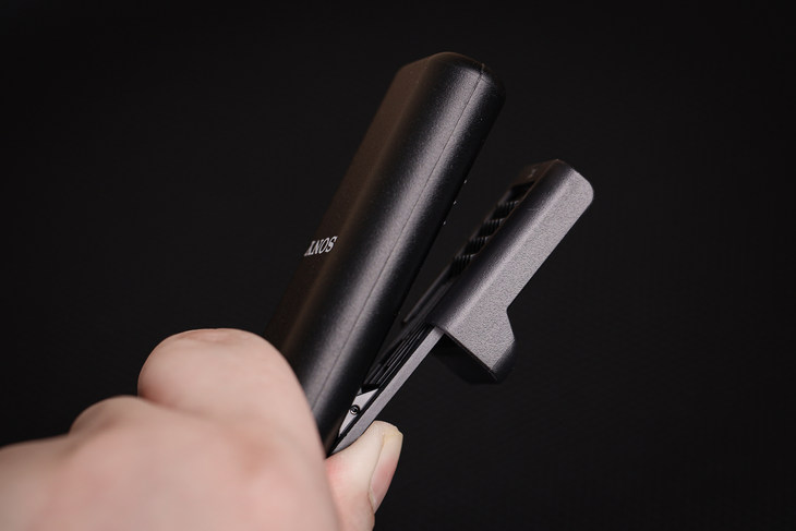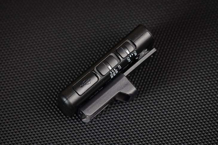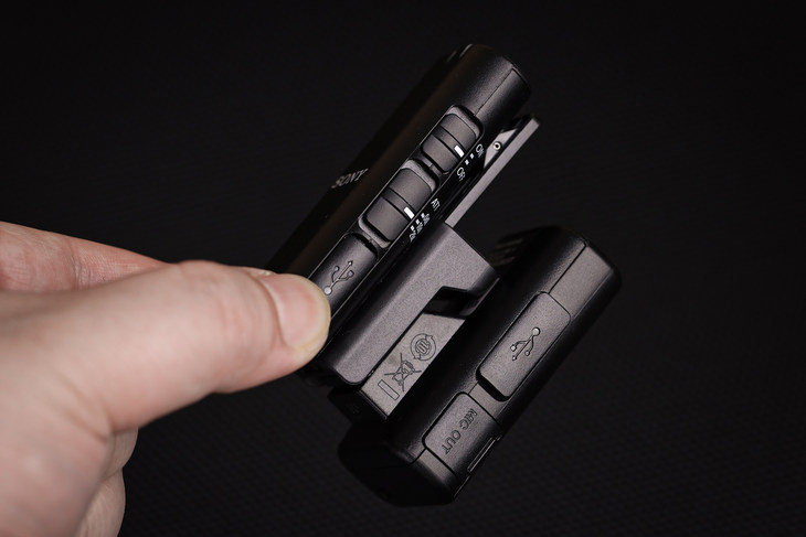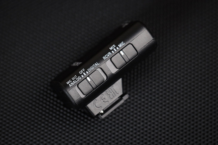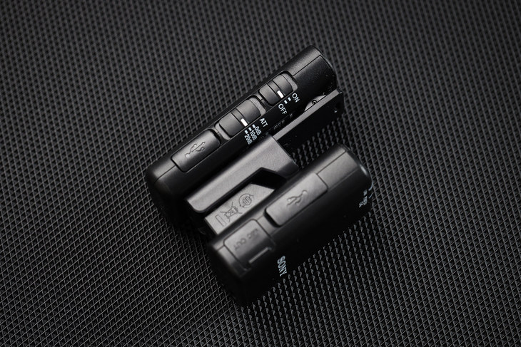 首先,索尼无线麦克风ECM-W2BT分为“接收器端(ECM-W2BT R)”与“麦克风端(ECM-W2BT T)”两个主要的部件,并且非常的小巧,接收器端尺寸仅为34.0x28.7x53.0mm,重量也只有28g;麦克风端要稍微长一些,但同样非常轻巧。麦克风端主要为被拍摄者使用,可佩戴在身上进行声音的拾取;而接收器端需插入相机的热靴插口来接收音频信号,同时接收器端ECM-W2BT R也是一个麦克风,在相应模式下也能进行拾音工作,相当于接收/麦克风二合一的功能。