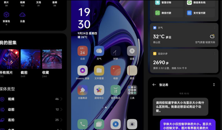 首先在视觉设计上,ColorOS的色彩取向整体保持更贴近真实自然的颜色,让我们长时间使用手机更舒适,轻量聚焦;同时ColorOS 11.2,过渡动画也相比,系统还提供丰富的外观自定义设置,如支持手绘的“无限熄屏”,10bit色深的Art+壁纸等等。