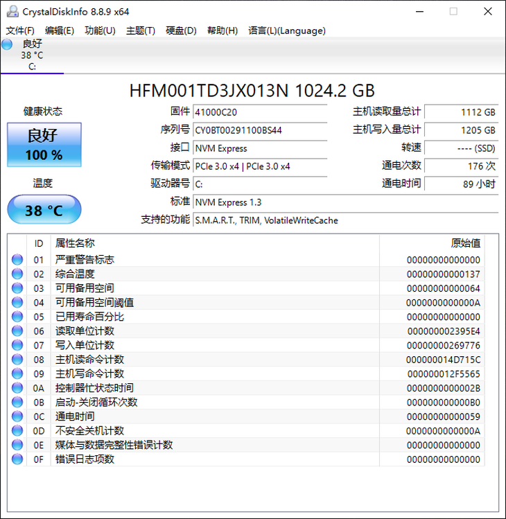 这款笔记本固态硬盘的传输模式为PCIe3.0 x4。