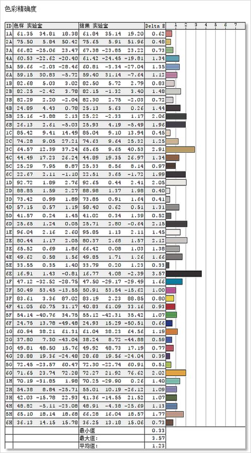 平均△E为1.23,△E≥3的颜色有一种。可以说这款2K显示屏的色准也是相当不错的。