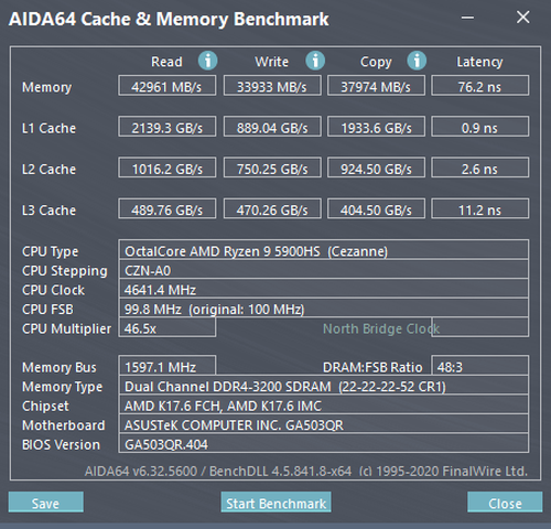 AMD锐龙9 5900HS标压移动处理器基于Zen 3架构以及更成熟的7nm工艺制程打造,8核心16线程,基础频率3.3GHz,最大加速频率可达4.6GHz,拥有16MB三级缓存。ZEN3架构相比ZEN2架构能够实现19%的每时钟周期指令数(IPC)提升,以及24%的能效提升,进步是非常之大的。