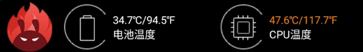 经过测试,未佩戴散热风扇时,跑分结束后手机的电池温度为36.4℃,CPU温度为51.6℃。安装散热背夹后,跑分完毕电池温度为34.7℃,CPU温度为47.6℃。ROG酷冷风扇5对于降低手机温度还是有这笔比较明显的效果的。